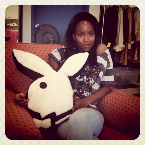 Behind the scenes photo, Whitney hiding out in the costume department on set for NBC’s The Playboy Club